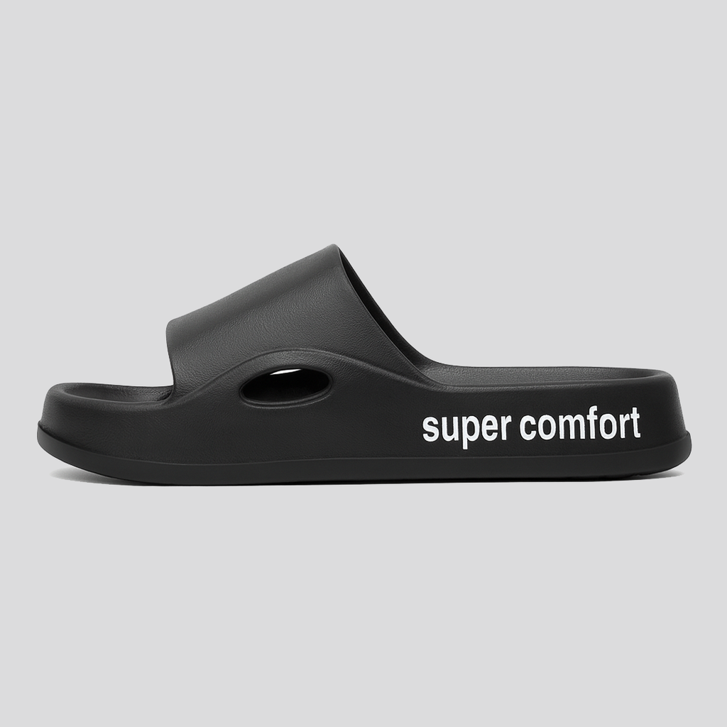 La suela acolchada y ligera reduce el impacto diario, mientras su estética minimalista encaja perfectamente con tu día a día — ya sea en casa, de paseo o para momentos de relax total.